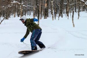 Start your day with a special “snowboarding” Powder snow surf board riding tour in the morning. Pow surf boards (often called “Yukiita” in Japanese) are
