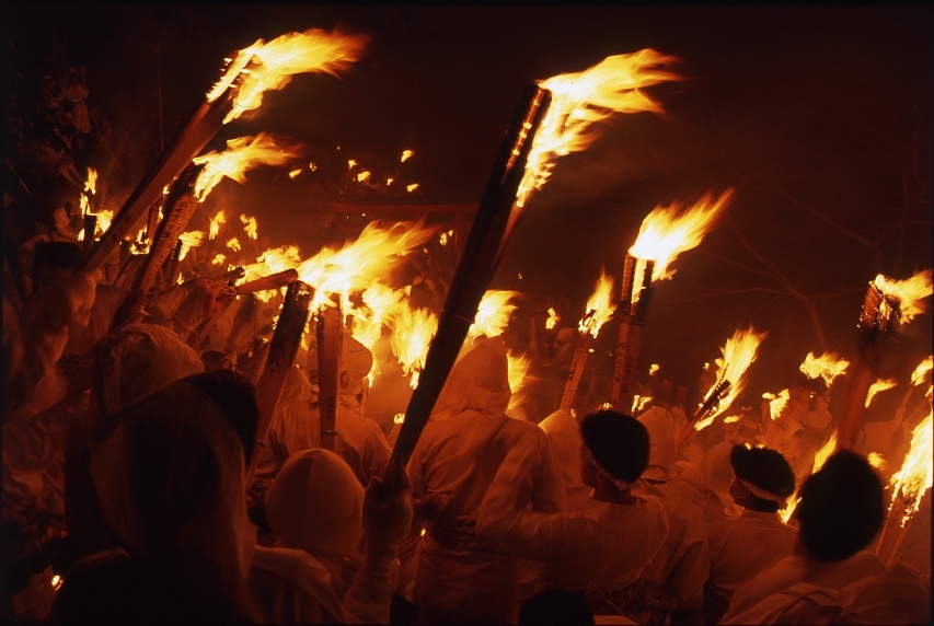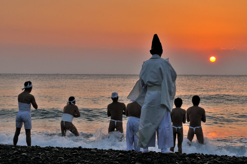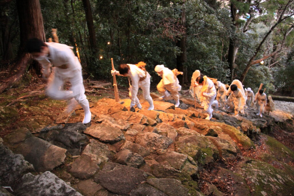 In the afternoon, attendees observe the solemn misogi purification ritual, cleansing body, mind, and spirit for the festival. They then closely follow the participants as they don white ceremonial clothes, visit the three shrines, and ascend closer to Kamikura Shrine. The rising tension and excitement as the group makes its way closer and closer to the shrine offers a glimpse into the festival’s essence.