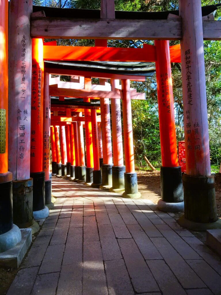 The trail’s initial section is one of the best. Starting at Kyoto’s iconic Fushimi Inari Shrine, after a steep climb to the overlook, one can leave behind the hordes armed with self-sticks by following a path that drops sharply down to some atmospheric groves of mini shrines, somewhat spooky in the dim light of the bamboo forest surrounding them.
