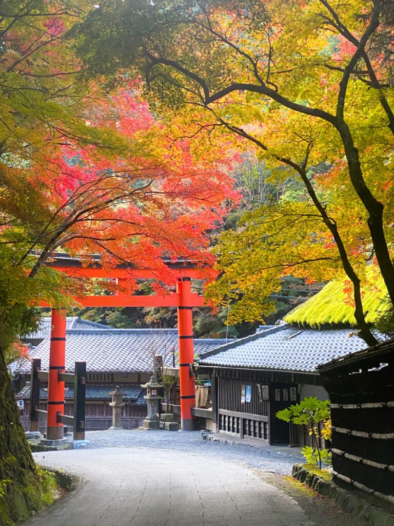 Otherwise, stick with the Isshu Trail as it drops sharply to Route 367. A relatively easy climb will take you up and over Esumi Pass, marked with its beautiful shrine, before descending to the quiet village of Shizuhara., nestled in its pocket of hills. It will be another steep climb up Yakkōzaka at the far end, then an equally steep descent to the base of Kurama Temple. Trains back to the city depart from here, but the walker could continue on through the village and along the river for another two kilometers to Ninose.
